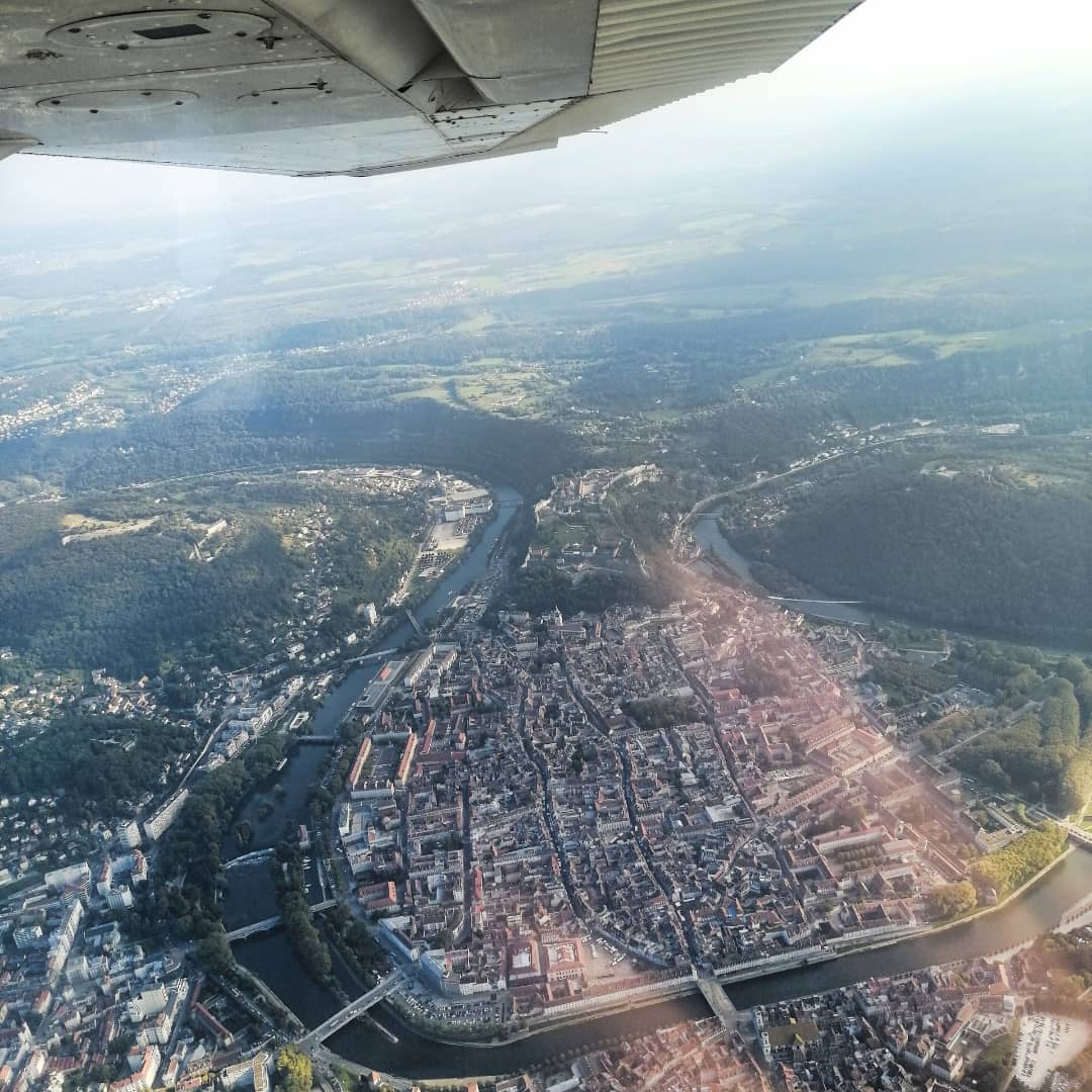 Nous avons fait un bapteme de l air avec un cessna 172 et avons survolé Besançon c était très joli vu du ciel nous avons profité d une vue exceptionnelle le pilote était très agréable et nous a expliqué de nombreuses choses nous avons retrouvé le sol bien trop tôt c était une très belle expérience